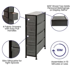 Emma And Oliver 4 Drawer Vertical Slim Storage Dresser-Wood Top & Fabric Pull Drawers