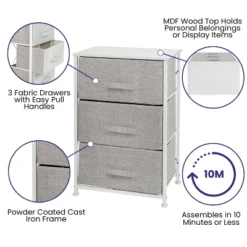 Emma And Oliver 3 Drawer Vertical Storage Dresser With Wood Top & Fabric Pull Drawers