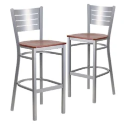 Emma And Oliver 2 Pack Silver Slat Back Metal Restaurant Barstool
