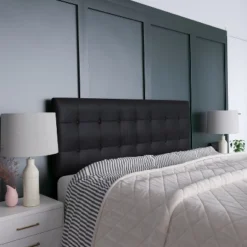 Emma And Oliver Button Tufted Upholstered Queen Size Headboard In Black Vinyl