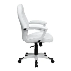 Emma And Oliver Mid-Back White LeatherSoft Tapered Back Executive Swivel Office Chair – Arms