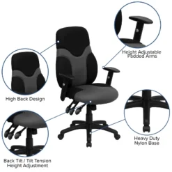 Emma And Oliver High Back Ergonomic Black/Gray Mesh Swivel Task Office Chair W/ Adjustable Arms