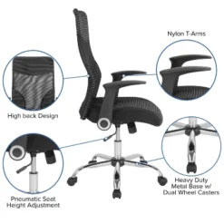 Emma And Oliver High Back Black Mesh Executive Swivel Office Chair With Flip-Up Arms