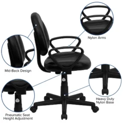 Emma And Oliver Mid-Back Black LeatherSoft Swivel Ergonomic Office Chair – Back Adjustment