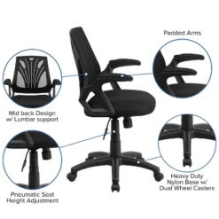Emma And Oliver Mid-Back Black Mesh Swivel Ergonomic Office Chair – Height Adjustable Flip-Up Arms