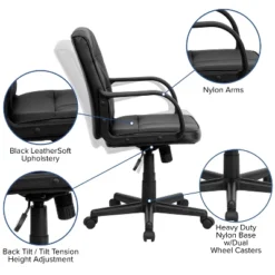 Emma And Oliver Mid-Back Black LeatherSoft Swivel Task Office Chair With Arms