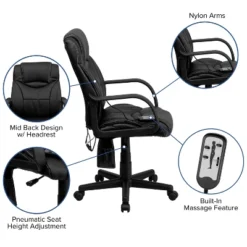 Emma And Oliver Mid-Back Ergonomic Massaging Black LeatherSoft Executive Swivel Office Arm Chair