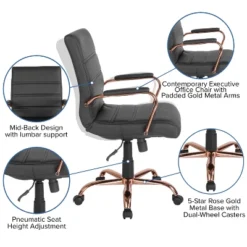 Emma And Oliver Mid-Back LeatherSoft Ribbed Executive Swivel Office Chair – Desk Chair