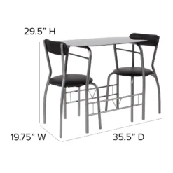 Emma And Oliver 3 Piece Black Glass Space-Saver Bistro Set With Padded Chairs