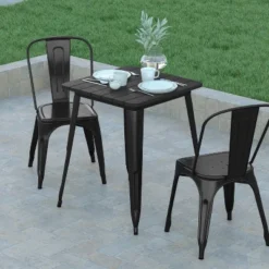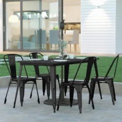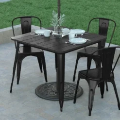 Emma And Oliver Indoor/Outdoor Dining Table, 31.5″ Square All Weather Poly Resin Top With Steel Base