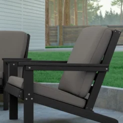 Emma And Oliver Adirondack Chair With Cup Holder, Weather Resistant HDPE Adirondack Chair
