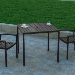 Emma And Oliver Outdoor Faux Teak Dining Table With Poly Slats – Square Patio Table