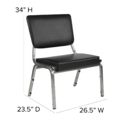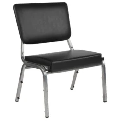 Provide safe seating for all patients in the hospital and healthcare industry with these medical grade reception chairs. The armless chair provides unrestricted access and seating comfort for heavier than average users. Settle in faster with a 21.5″ extra wide seat with thick cushioning while the supportive 18-gauge tubular frame withstands up to 1000 pounds. Assemble group therapy sessions placing these metal chairs in a circle. These stylish 3/4 open back bariatric guest chairs can be used for temporary sessions or setup permanently in your waiting room. For temporary usage, these metal stack chairs stack up to 10 high for storage while the plastic bumper guards safeguard the frame from scratches. If you need seating for your healthcare facility these antimicrobial guest chairs are an excellent choice for your waiting room and patient room. Designed for intensive use this easy to clean chair is optimal for your high traffic environment. Additional Features: CAL 117 Fire Retardant Foam, 18 Gauge Steel Frame, Powder Coated Frame Finish with Plastic Floor Glides, Plastic Bumper Guards protect finish when stacked, Designed for high traffic commercial use.