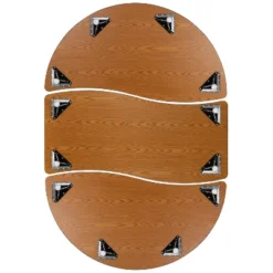 Develop students interpersonal skills with these collaborative wave activity tables that are shaped for group learning success. Students will have plenty of working space on this 3-piece nesting classroom table with two half circle end pieces and a rectangular middle table. Complete with seating by pairing with our ergonomic shell stack chairs. Built to last through many class turnovers the thermal fused laminate top is scratch, stain and warp resistant. An attractive black powder coated finish protects the upper legs from scratches and height adjustable chrome lower legs give you the flexibility to raise or lower the table a full 9″ in 1″ increments. Self-leveling nylon floor glides keep the table from wobbling and protect your floor by sliding smoothly when you need to move it. Students of the 21st century will look forward to learning on modern classroom tables, do not allow your classroom setting to fall behind. Create unlimited combinations using various shaped nesting activity tables in your classroom, lab, or library. Additional Features: Self-Leveling Nylon Floor Glides prevent scratches and wobbling, Recommended Grade Level: Preschool – 2nd Grade, Recommended Seating Capacity: 6 children, Recommended Usage: home school, classroom, playroom, daycare, Half Circle Table Size: 30″W x 60″L x 16.25-25.25″H ; Rectangle Table Size: 26″W x 60″L x 16.25-25.25″H.