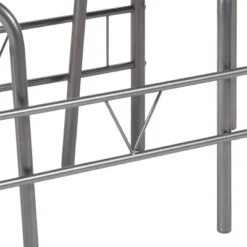 Complete your dining room or kitchen with some retro style flair when you bring home this table and chair set that will make you nostalgic for earlier times. Table features a black glass top that matches the chair’s seat, and complements the silver powder coated frame finish. The decorative design on the bottom of the panel highlights this table while the chairs feature a rounded seat with black vinyl upholstery, and an open back design. This space-saving set is perfect for eat-in kitchens.