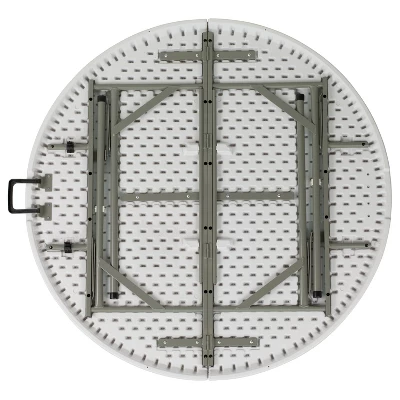 Emma And Oliver 4-Foot Round Bi-Fold Granite White Plastic Event Folding Table With Handle - Image 5