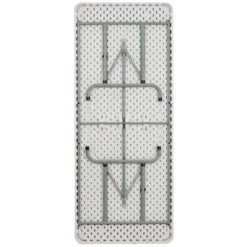 Need an extra table in the house to work on your art projects, candle making classes or to store your supplies on that can double as a dining room table for extra guests? This 6′ long banquet folding table accommodates up to 8 people and adjusts to meet different seat heights to become a great fit in your home for everyday or temporary use. Built for commercial use this heavy-duty folding table makes appearances in restaurants, warehouses, schools, churches and rec centers. Folding tables can be used for all your sit-down activities and their legs lock when folded to be stored away afterward. This versatile folding table can be dressed up during holiday events, parties and special activities. Place multiple tables side by side or in rows to accommodate large party events. If you have hard flooring at your banquet hall or home the floor caps will prevent scratches and allow the table to glide smoothly. Easy to clean and store, plastic folding tables are the best and most popular option for any occasion. Although designed for indoor events this party table can be used outdoors on the deck or patio during good weather. Store the table indoors and protect the frame from extreme moisture. Get your ready to use rectangular folding table for your home or business today. Additional Features: Frame adjusts 7.875″ to accommodate various seat heights, Gray Powder Coated Locking Legs with protective floor caps