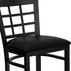 Create a first-rate dining experience by offering your patrons great food, service and attractive furnishings. Metal barstools are a popular choice for furnishing restaurants, pool halls, lounges, bars and other high traffic establishments. This window back metal restaurant barstool is easy to clean, which is an important aspect for a business. Built to withstand everyday use in the restaurant and hospitality business, these dining stools will also look great in your home. The thickly padded black vinyl upholstered seat will keep guests comfortable. The frame is stabilized using two welded support bars, which includes a footrest. The floor glides help protect your floors and ensure smooth gliding. Use this bar height stool in your dining room or home bar to give your decor a fresh look. The simple and lightweight design of this stool is a must have, whether used in the home or your commercial business. Additional Features: Welded Joint Assembly, Two Curved Support Bars, 18 Gauge Steel Frame, Black Powder Coated Frame Finish, Floor Protector Plastic Glides, Designed for Commercial Use; Suitable for Home Use