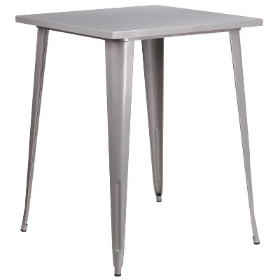 Create a vibrant, energetic dining space with this colorful industrial style bar height blue metal table. This lively table will add a retro-modern look to your home or business. Pair this table with like colored metal chairs for a uniform look or mix things up by adding different colored chairs. A thick brace underneath the top adds extra stability. The legs have protective rubber floor glides that prevent damage to flooring. This all-weather table is great for indoor and outdoor settings. For longevity, care should be taken to protect from long periods of wet weather. Great for both commercial and residential spaces, the decorating possibilities for this table are only limited by your imagination
