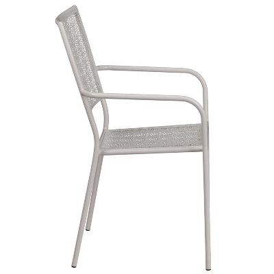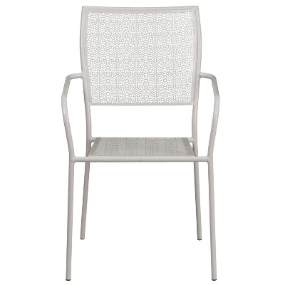 Add color to your patio furniture with this black patio chair. People are moving towards colorful outdoor furniture to furnish their outdoor living spaces and you should too. This stackable patio chair is a rare find that is crafted with transparent rain flower print on the back and seat. The steel framed patio chair is a solid chair that is built to last on the patio of your home and restaurant. During wet weather months, store these chairs vertically, they can be stacked up to 8 chairs high or bring them indoors. Purchase the matching black square or round patio table to complete your outdoor dining set. Additional Features: Powder Coated Frame Finish, 1.2mm Tubular Frame, Floor Protector Plastic Glides, Designed for Commercial or Residential Use