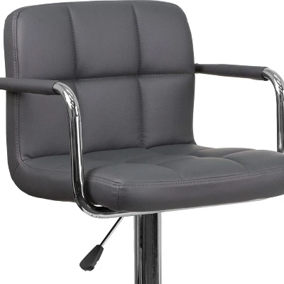 Emma And Oliver Contemporary Quilted Vinyl Adjustable Height Barstool With Arms