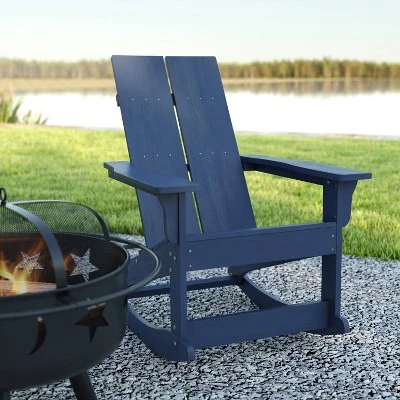 Emma And Oliver Modern All-Weather Poly Resin Adirondack Rocking Chair For Indoor/Outdoor Use