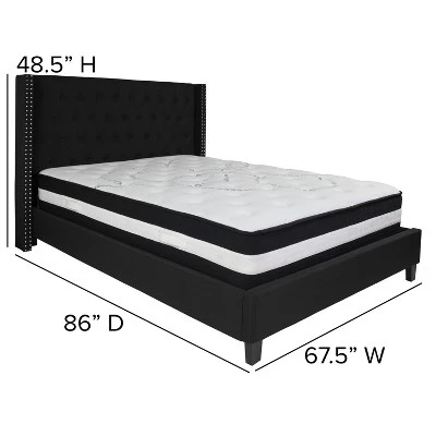 Look no further, you’ve found the bed of your dreams at a price no one will believe. This gorgeous platform bed will keep your bedroom looking fresh for years. This beauty is adorned by nailhead trimming on the protruding sides and has a button tufted panel headboard. The headboard has a decent amount of height to prop yourself up against it. No footboard means you have easy access to make up your bed. The low base frame provides you with an open concept feel. Settle in for a peaceful night of resting atop the pocket spring mattress supported by 30 wooden slats that are designed to support the mattress without the use of a box spring. The 12″ pocket spring mattress provides superior motion isolation and supports the contours of your body. The interior make-up consists of pocket spring coils and foam. The mattress instantly starts expanding once you cut the plastic and will return to its original shape in 2 to 5 days. You deserve a job well done for selecting such a breathtaking bed that will give your space the uplift that you’ve been yearning for. Additional Features: Pocket Coils reduce motion transfer, 6.5 Gauge Springs, Foam Cushioning, Medium Firm Comfort, Bed Handles provide easier movement