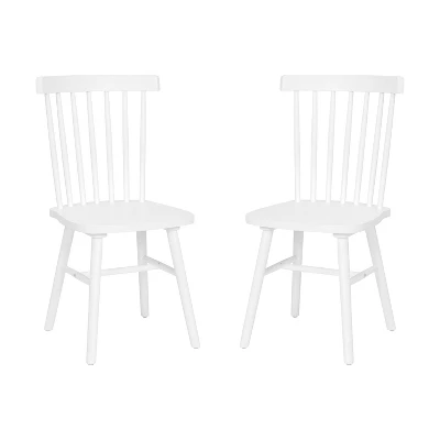 Character and charm blend in this set of two dining chairs. An elegant cross between schoolhouse and cottage style, the versatile design of these dining chairs is perfect for any home. Premium solid wood construction provides worry free seating for your family and guests with a 800 lb. static weight capacity. The attractive spindle back offers a modern, minimalist vibe while the saddle seat provides maximum comfort. The armless design slides completely under most tables for space-saving convenience. Felt pads on the legs protect your flooring surfaces and ensure smooth movement. Shipped fully assembled for your convenience, buy several sets to furnish a large dining room for a simple, yet sophisticated look that can adapt to your evolving style. The low maintenance upkeep is great for busy lifestyles. Simply wipe down your new chairs with a damp cloth to maintain their looks for years to come