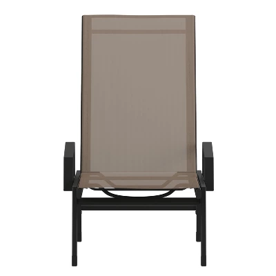 Nice weather is right around the corner and you will be more than ready when you have this 5 position adjustable lounger with integrated arms. With recline angles from 120° to 180° you can sit up to read that bestseller you’ve been meaning to get to, lay flat to take a little nap or enjoy the recline positions in between. Breathable textilene fabric allows for airflow to keep you cool and is quick drying making it ideal for poolside use. Designed to stand up to the elements, this lounge chair is UV fade and weather resistant and boasts a powder coated rust-resistant steel frame that holds up to 350 lbs. static weight. Protective floor caps prevent damage to indoor flooring and keep the chair in place when you sit or stand. Weighing in around 20 lbs. this outdoor lounge chair is highly portable to take along to your favorite locations. Assembly takes less than 30 minutes and cleanup is quick and easy with a damp cloth, perfect for busy households. Purchase several to complete your indoor or outdoor setup.
