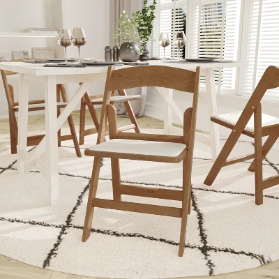 Whether you are looking to spruce up the look of your home or make a lasting impression when customers visit your business, this indoor/outdoor folding event chair is the perfect choice. While it will look great in your kitchen or dining room or outside on your patio, porch, or deck, this chair is also graded for commercial use, making it a seamless addition to any restaurant, bar, bistro, lounge, or hotel. Enjoy the best of both worlds with a resin construction that presents a realistic wood appearance for all the classic style and none of the risk of fading or necessary upkeep that comes with real wood. Crafted with weather resistance in mind, this chair is equipped to provide crowd-pleasing comfort around the house, at your business, or during events like weddings, picnics, barbecues, and banquets all year round. The vinyl seats are removable, washable, and replaceable to keep your chair looking like new. The lightweight design allows for easy movement and is engineered to hold up to 1,000 lbs. static weight. Plus, after your dinner party or dinner service, straightening up is made easier with a foldable structure that allows for easy storage. For added convenience, no assembly is required, and cleaning is easy by wiping with a dry cloth, water, and foam cleanser. The polypropylene resin frame is the same color throughout, meaning there is no need to repaint if nicked or scratched. Impress your friends, family, and customers alike with this commercial grade indoor/outdoor folding event chair.